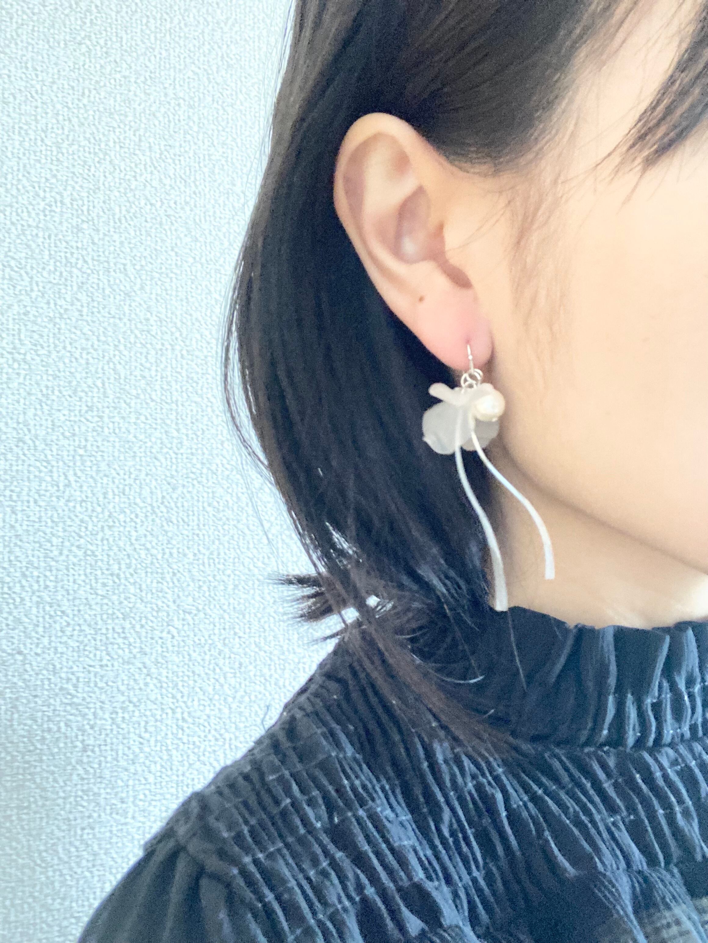 耳元で曲線が揺れる動きが女性らしさを引き出してくれます。