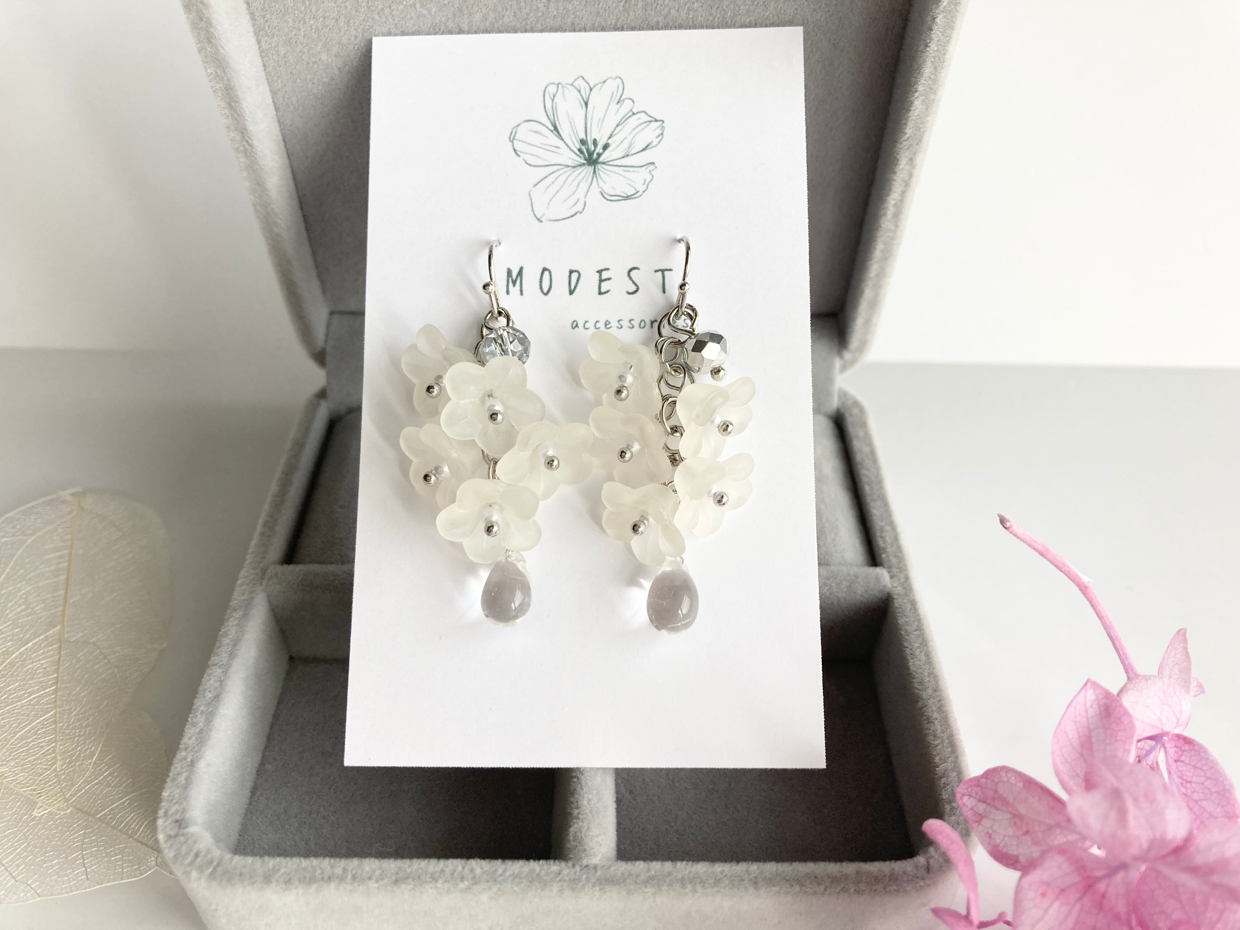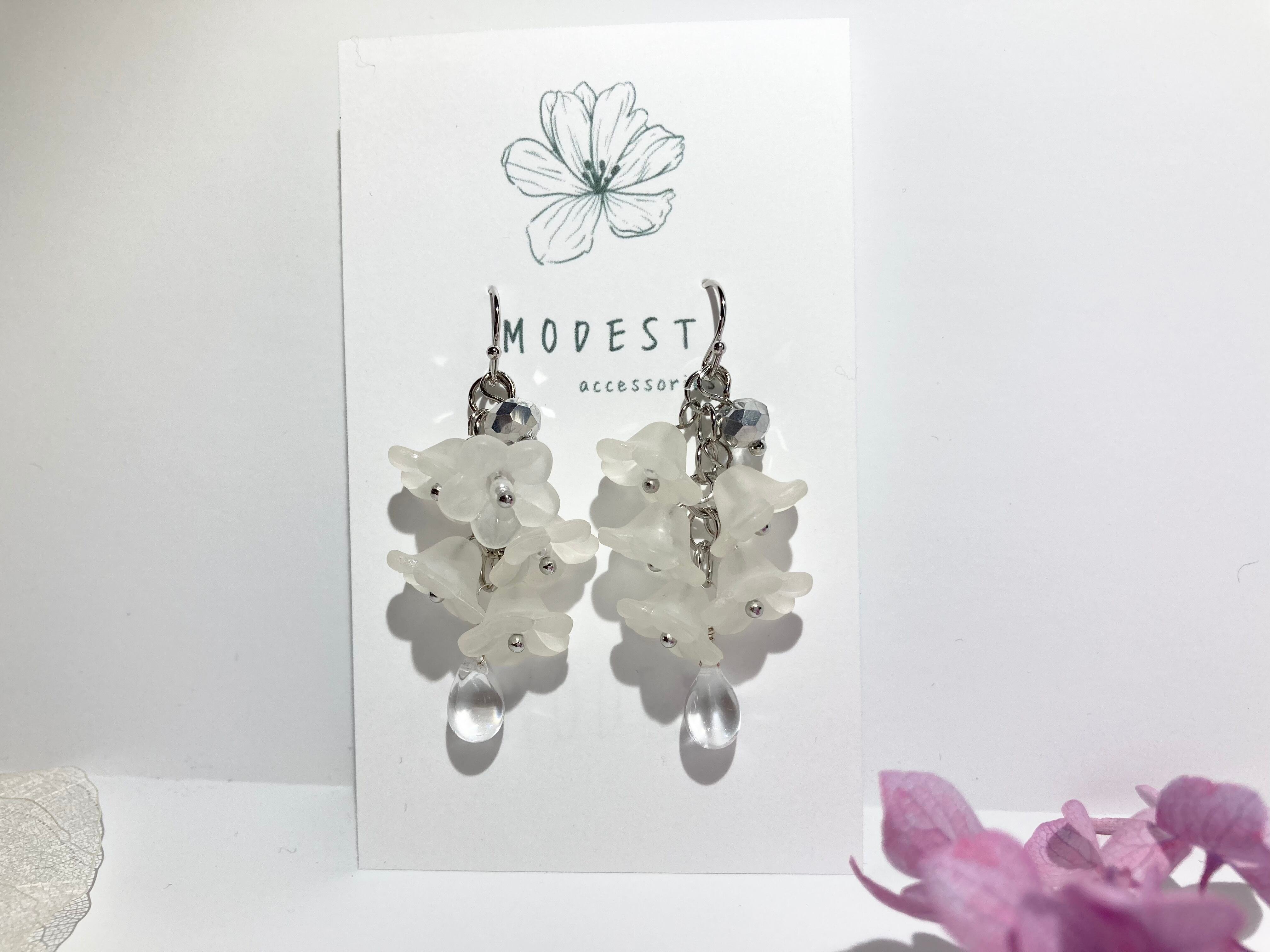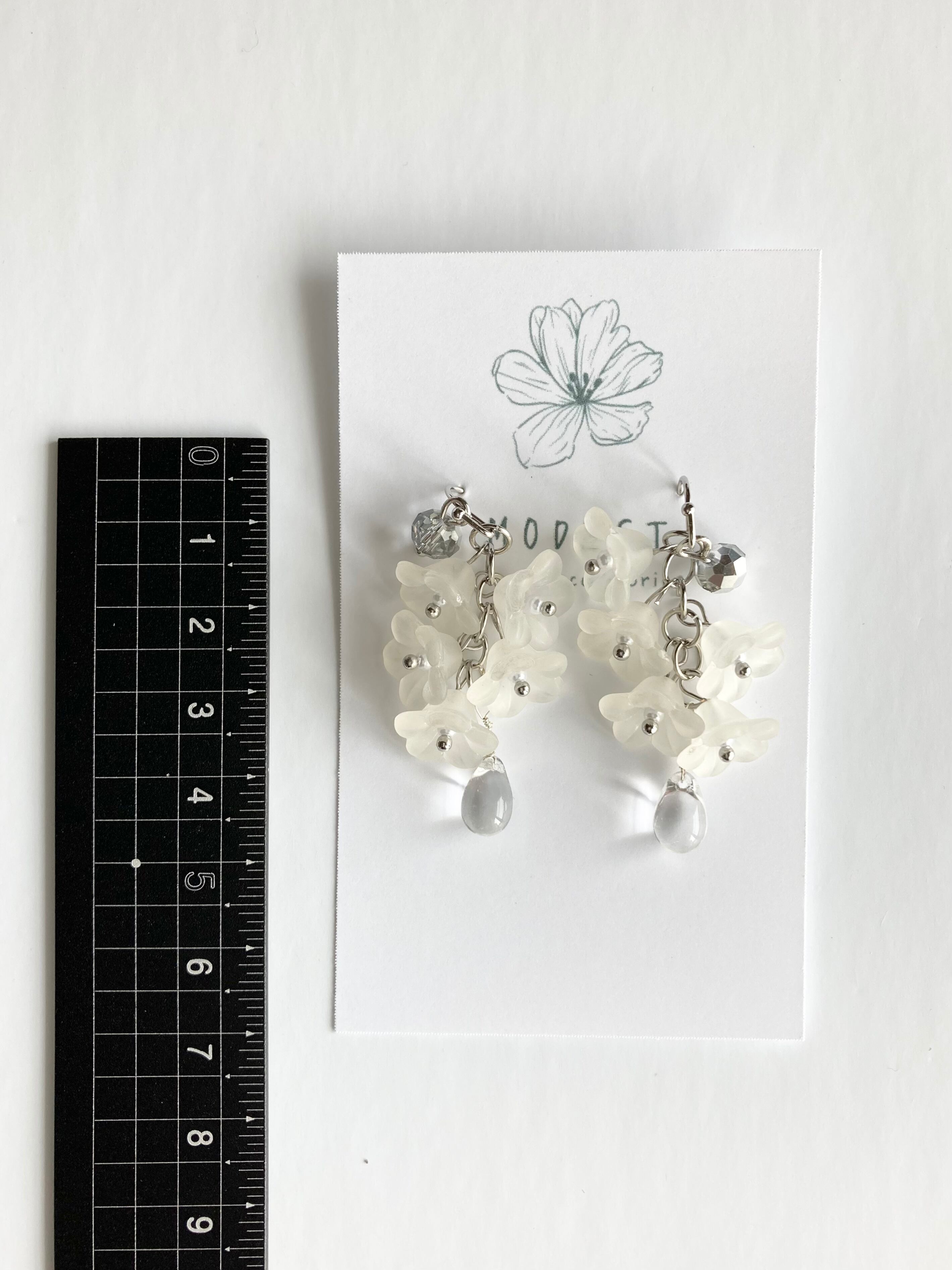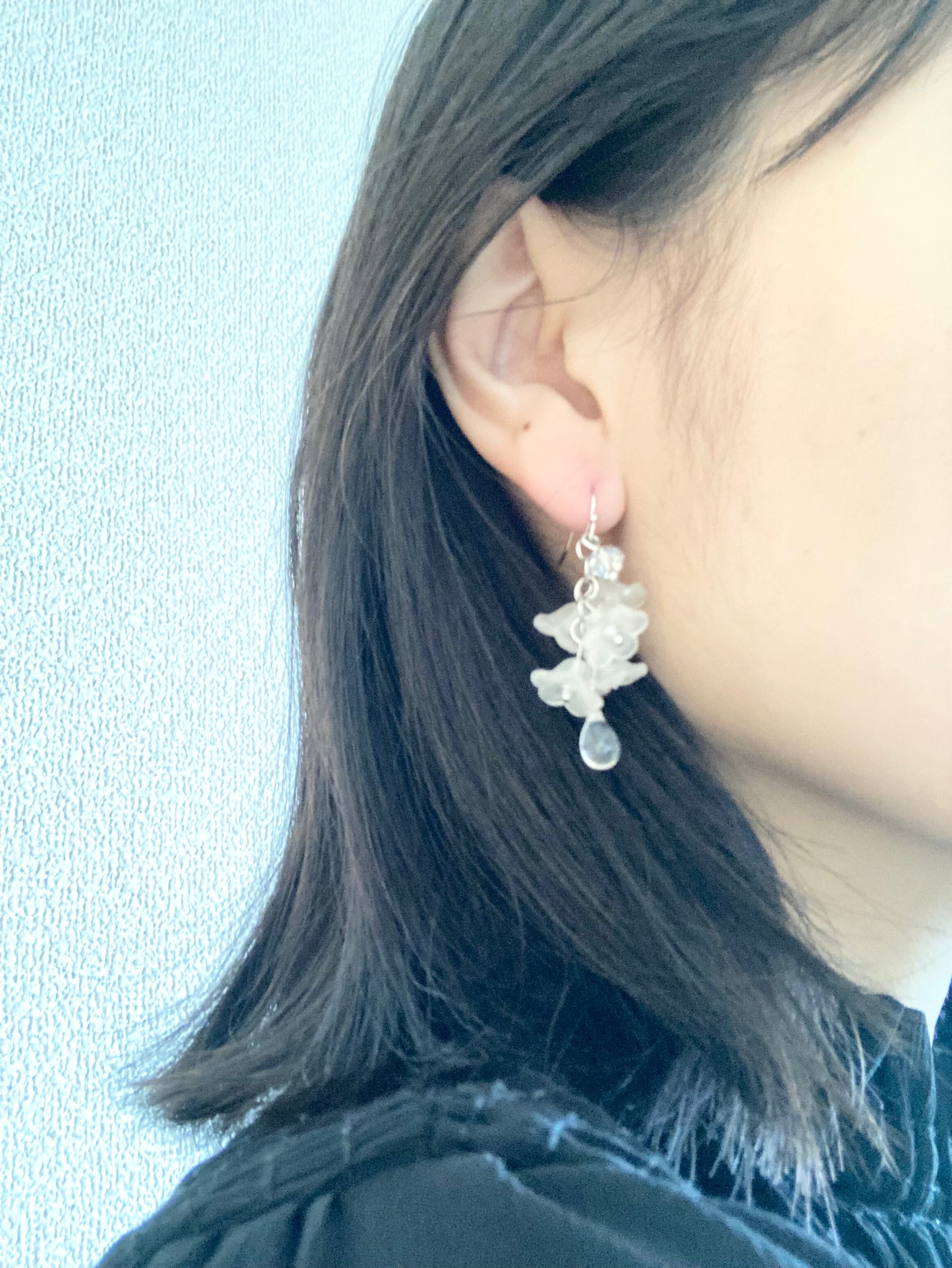 チェコビーズが花の雫のようで、繊細なイメージで可愛らしいピアスです。