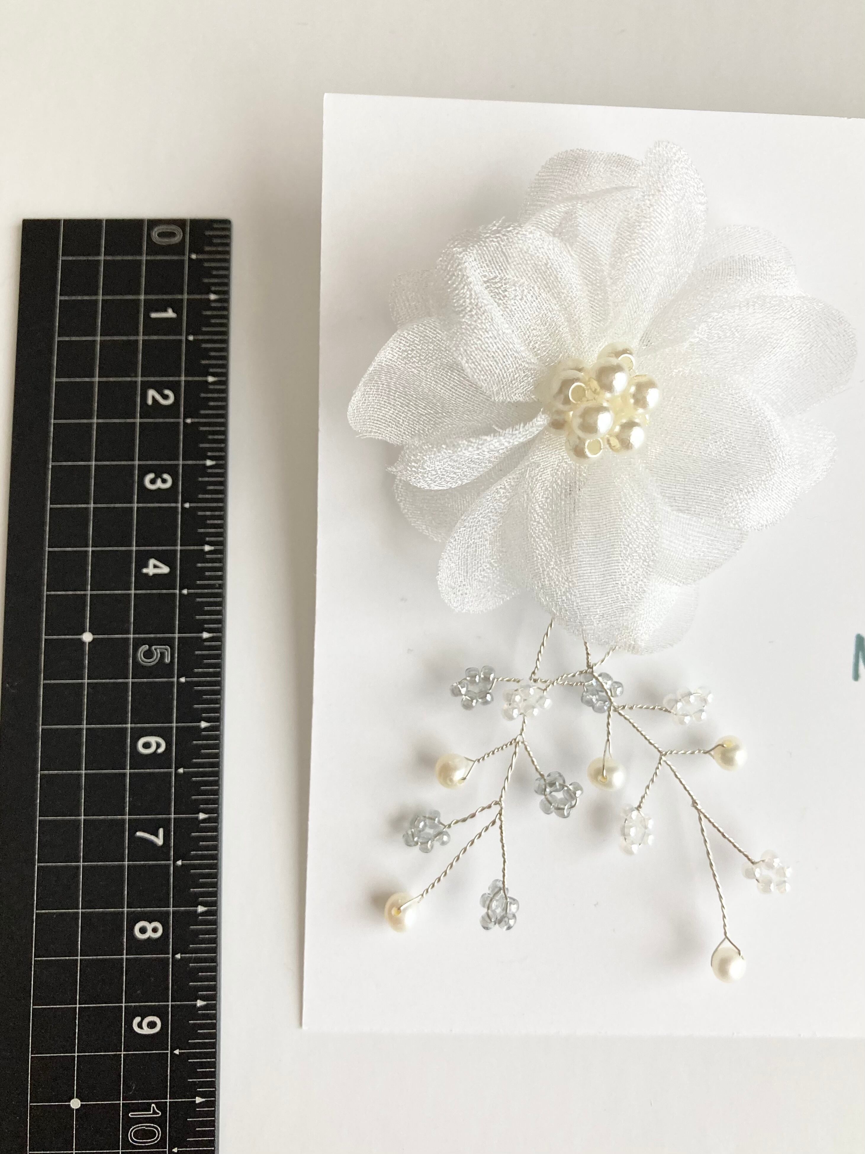 オーガンジー生地のお花の中央はパールボールで華やかに
