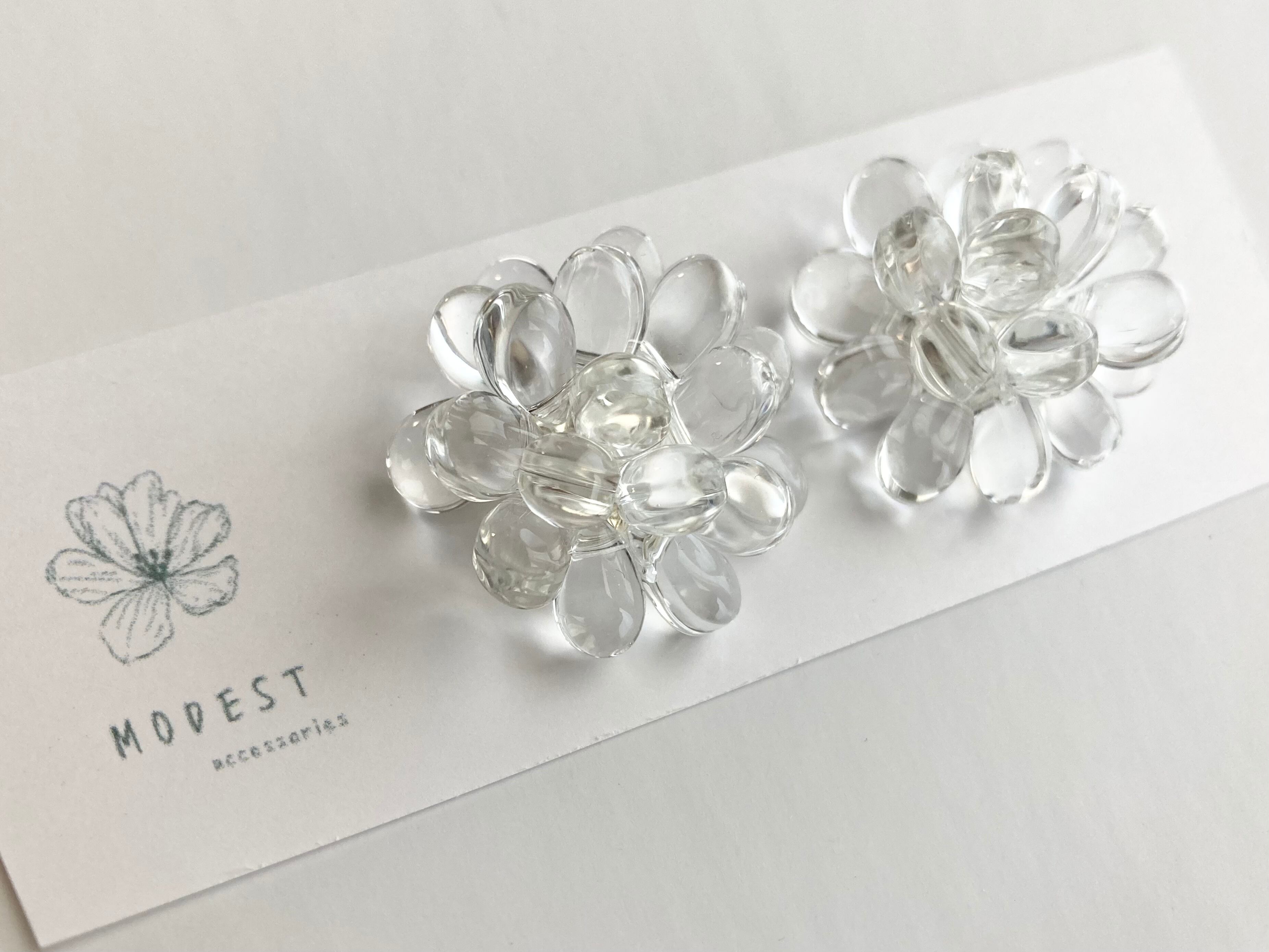 透明ビーズが夏も涼しい耳元で浴衣にもおすすめです。